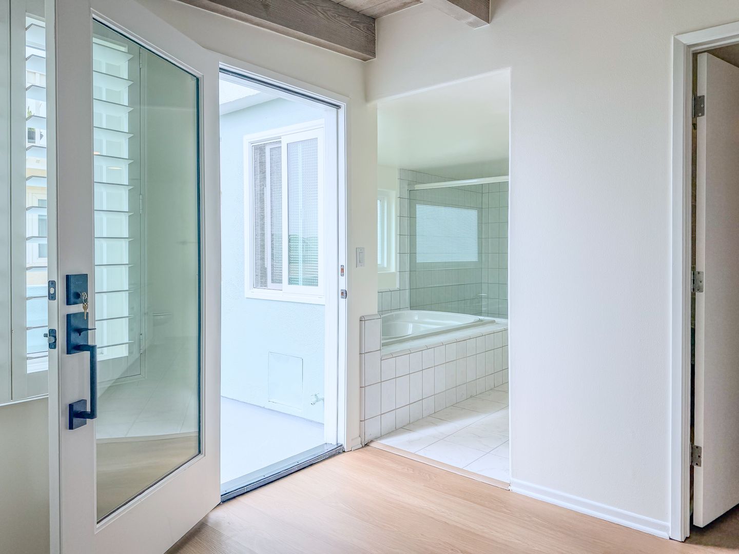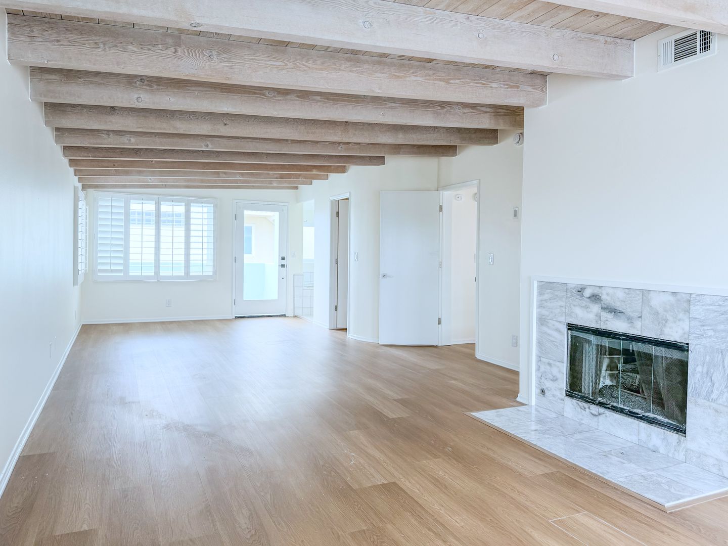 The third floor is home to the primary suite, a true retreat with wood-like flooring, a gas fireplace, and two private patios offering peekaboo views of both the harbor and the ocean. This serene space captures the tranquility of beachside living. Also on this level is a rooftop deck, perfect for entertaining or unwinding at sunset, complete with soft lighting and beautiful views of the coast.