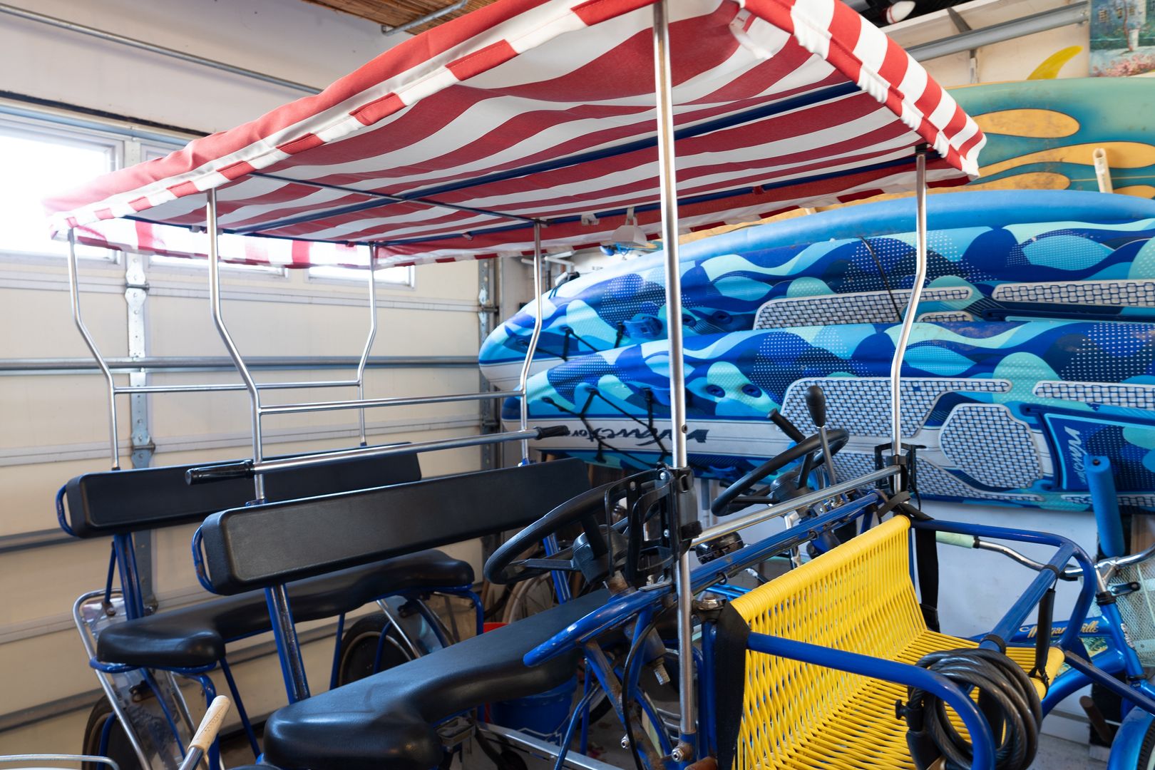 The garage is a hub of fun activities, stocked with a ping pong table, cornhole, spike ball, foosball, and more! Explore the beach with provided kids' and adult wetsuits, a wagon, bikes (1 tandem and 6 adult), sand toys, 3 boogie boards, 5 surfboards, kites, and grills for your summer cookouts.
