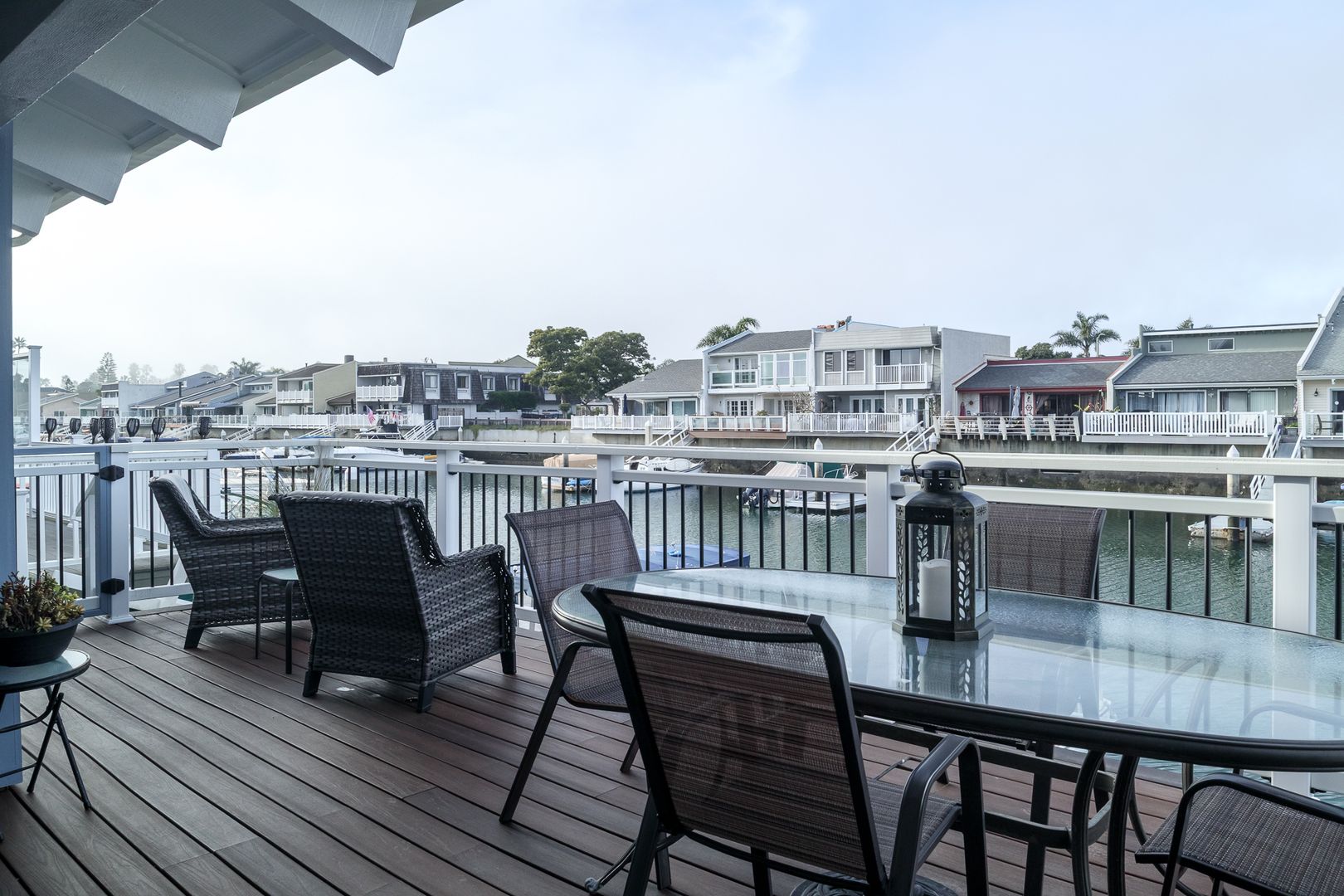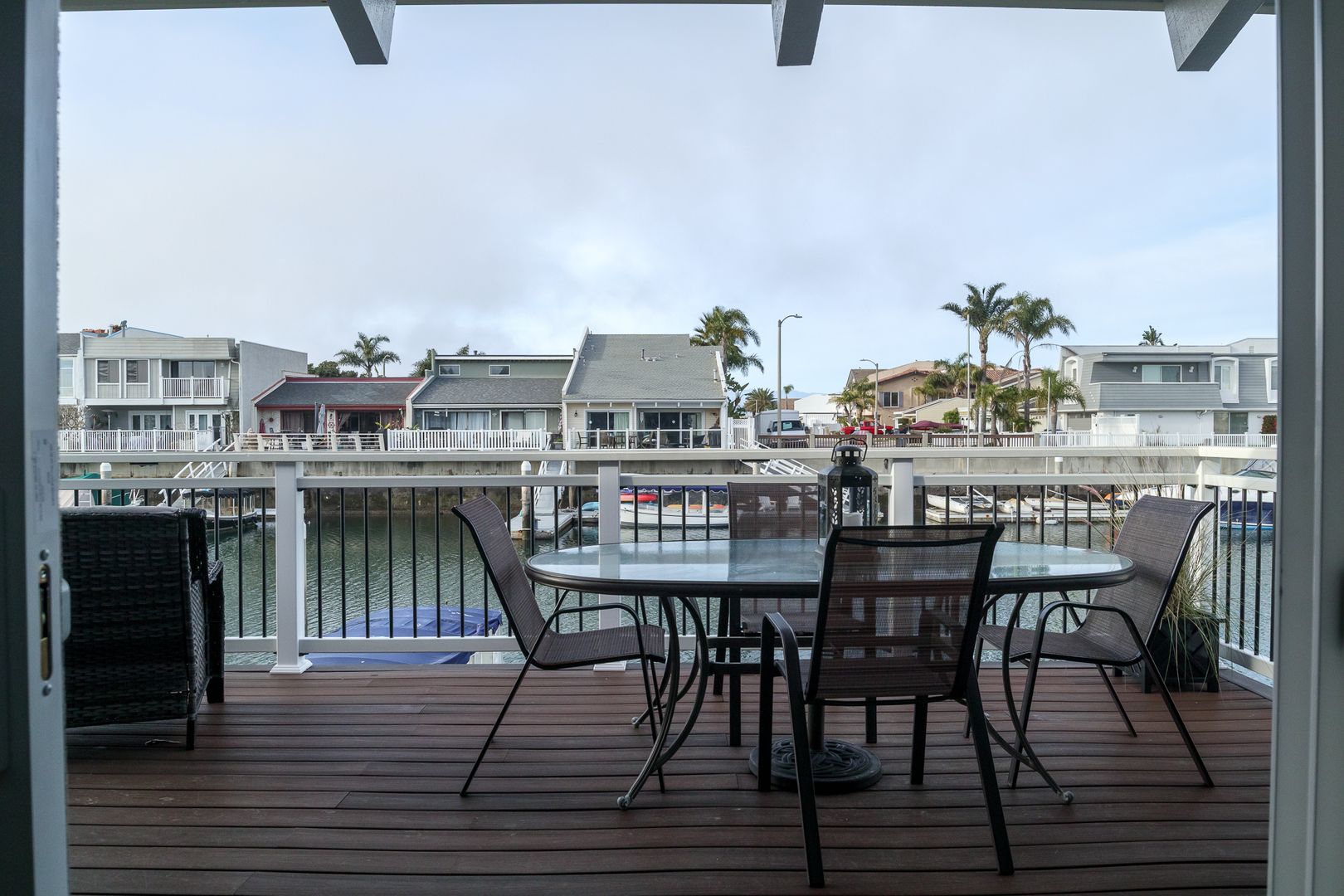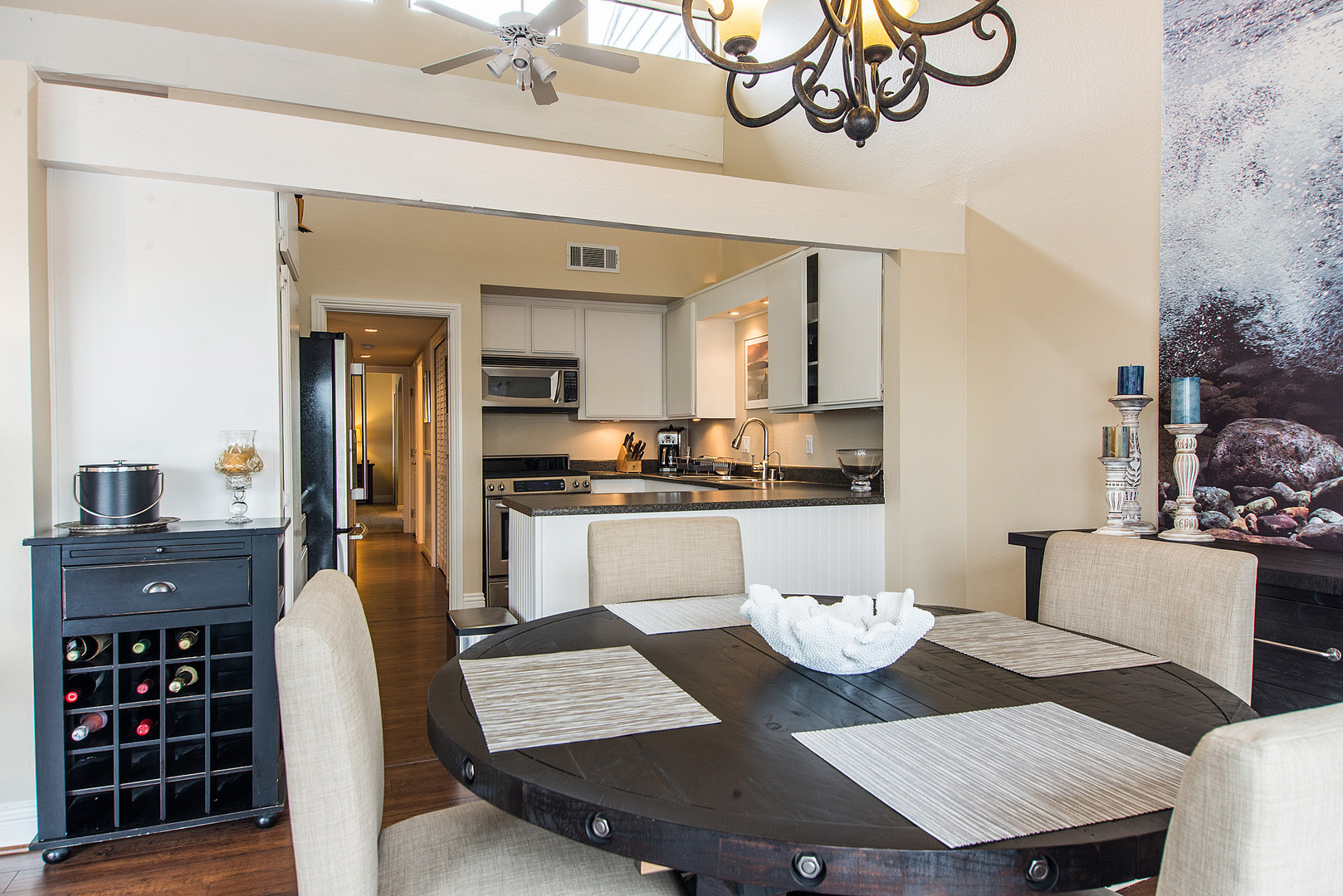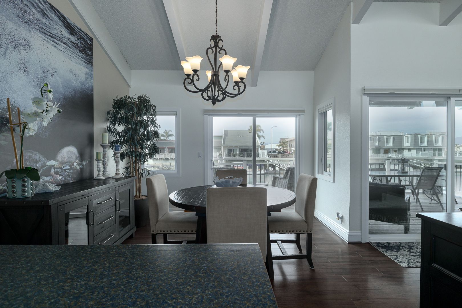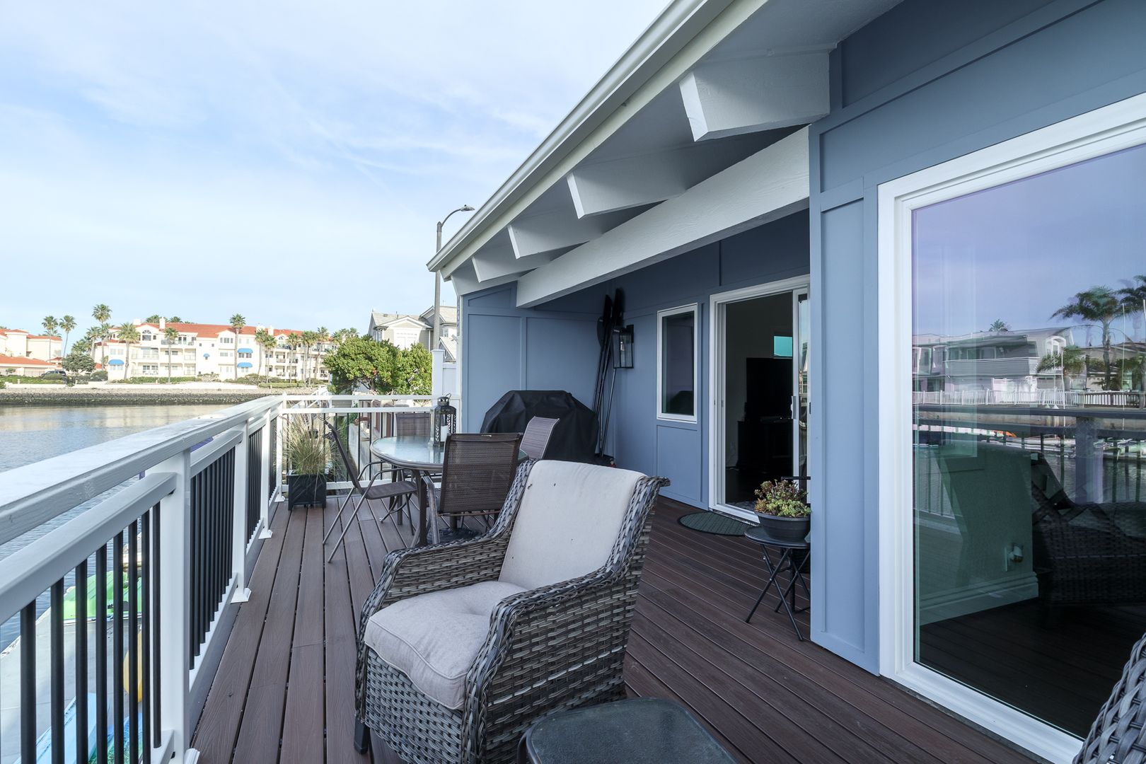 Gorgeous single-story, two bedroom two bathroom, boat dock home. The first thing that meets your eye when you open the door of this beautiful home, is the stunning hard wood flooring in a tastefully decorated open living space that boasts a 60 inch flat screen TV with game console and wifi. The lovely furnishings throughout the home give a sense of relaxation the moment you enters, and the boat dock accessible dining/ sitting area on the patio expands the feel of relaxation at the sea. Boat not included.