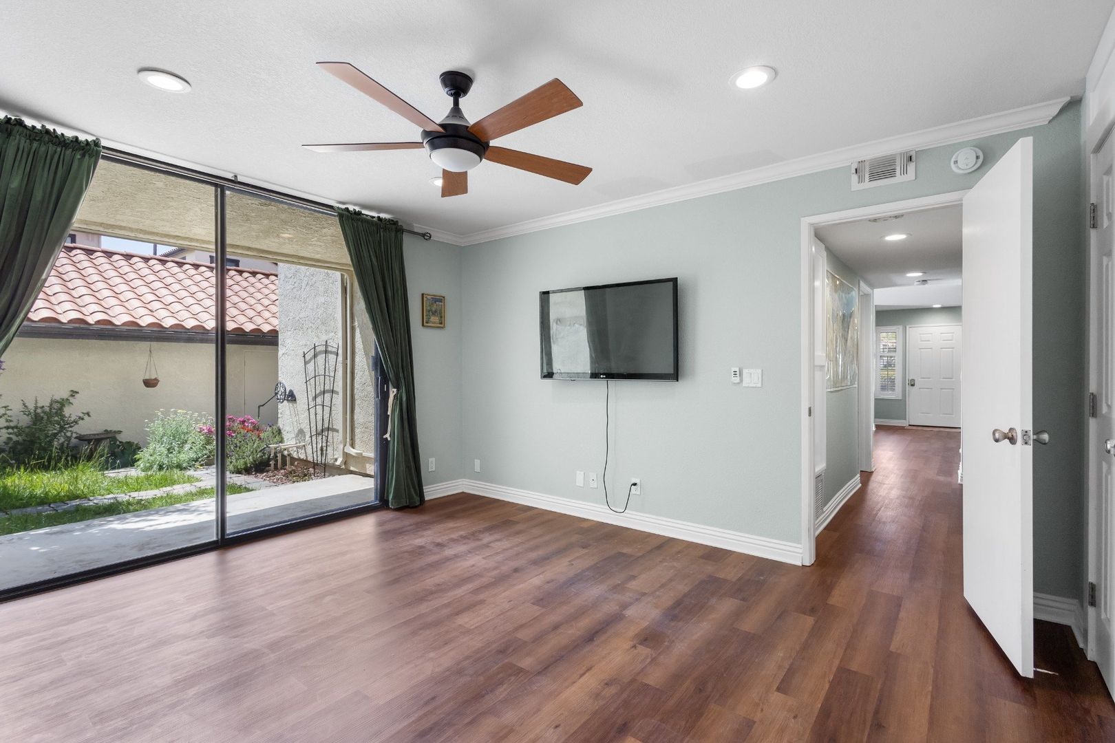Recessed lighting and an airy, open layout with sliding doors from every room to the backyard or garage