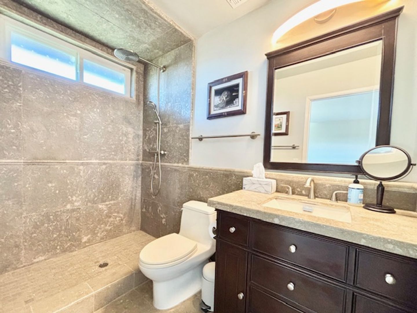 All bedrooms are generously sized, with the primary suite featuring an en-suite bathroom elegantly finished in travertine, providing a luxurious retreat.
