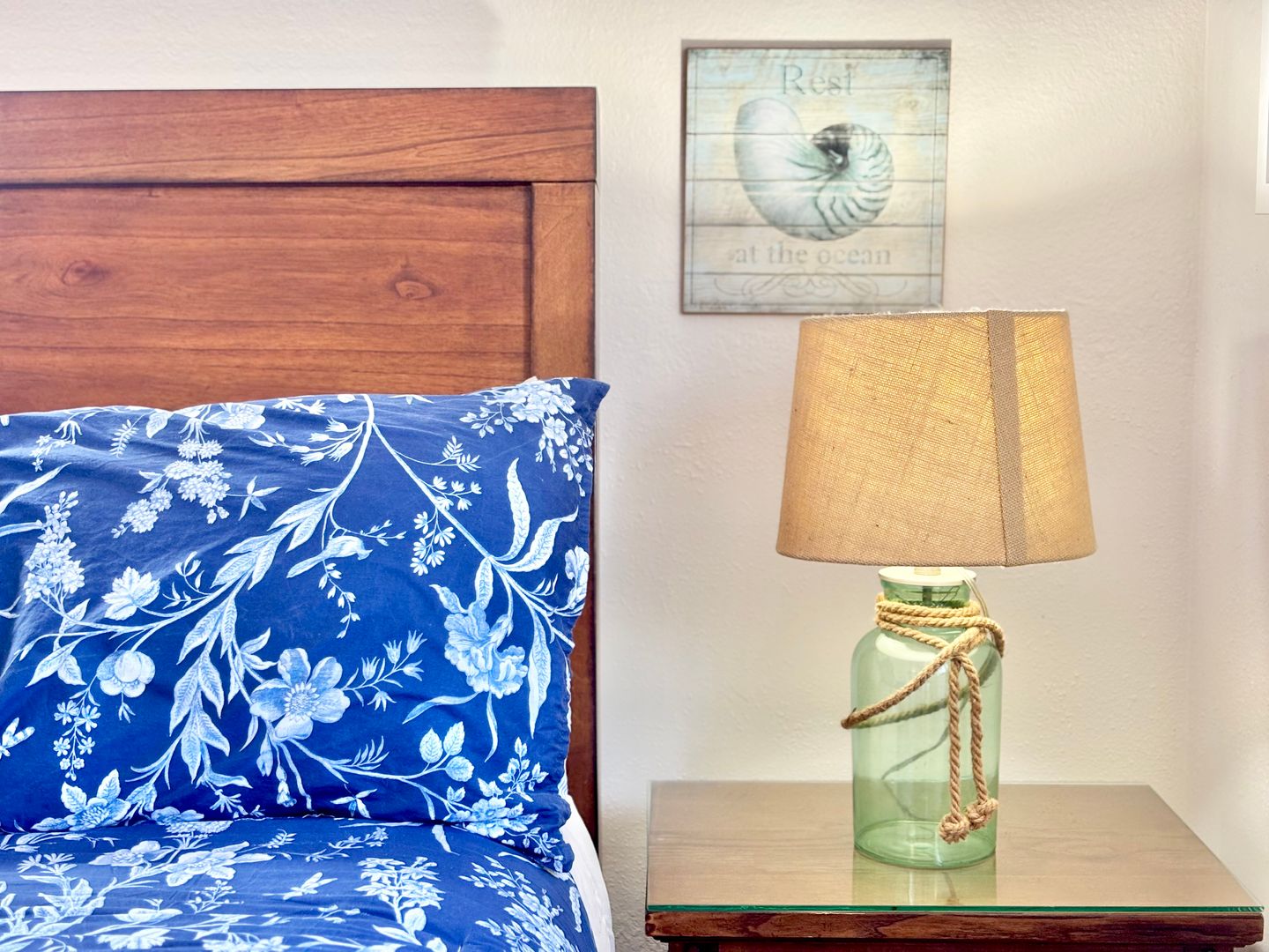 The bathroom includes a shower/tub combination, making it easy to rinse off after beach days or unwind with a soak in the evening.