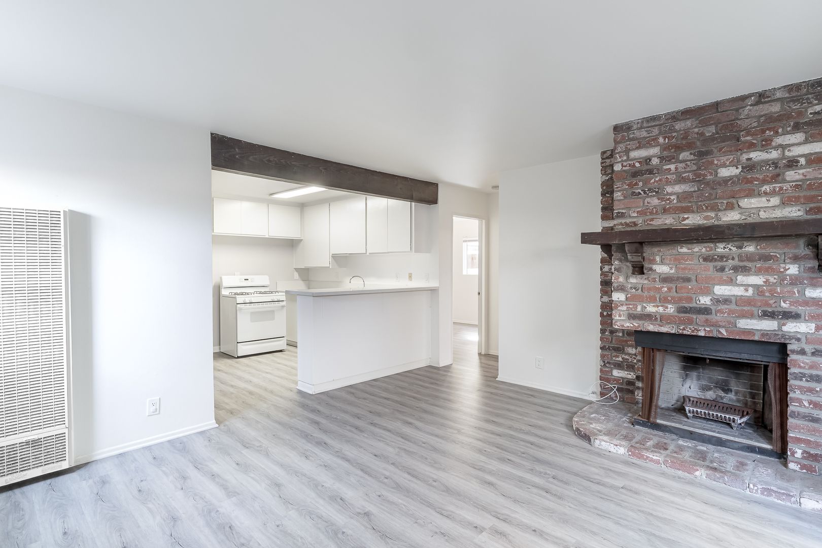 Welcome to this charming lower-level unit in the highly desirable Silverstrand neighborhood, just a short walk from the beach. Step into a cozy living room featuring a warm gas-burning fireplace—perfect for relaxing evenings at home. A quaint breakfast bar separates the living area from the kitchen space.