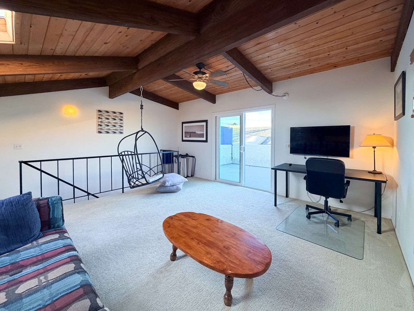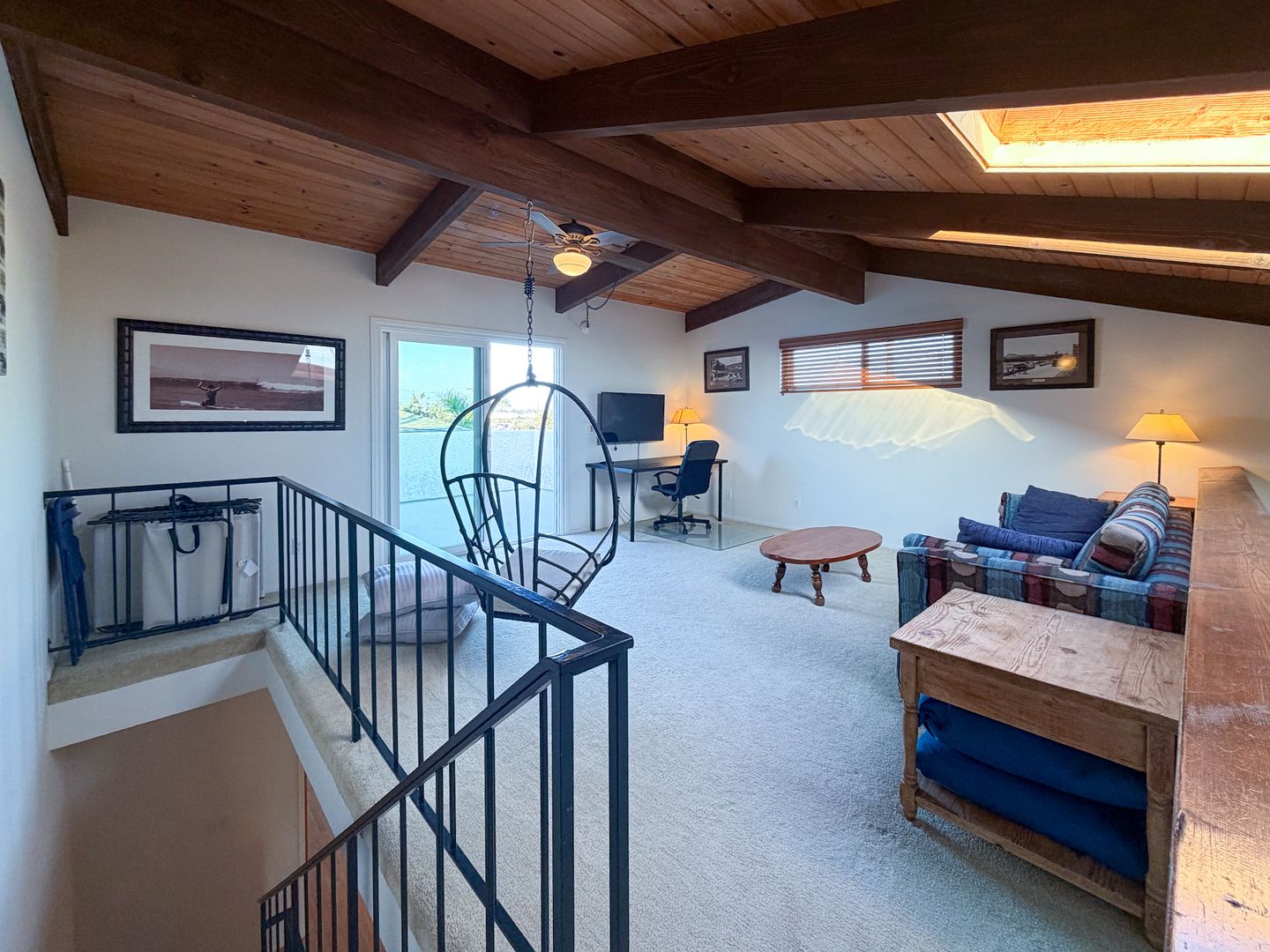 Head up one more set of stairs to find the open loft. The loft offers a work space, queen sleeper sofa and sliding glass doors that have direct access to the private sun deck! The sun deck will be the perfect spot to enjoy the sunny days and ocean breeze of Silver Strand.