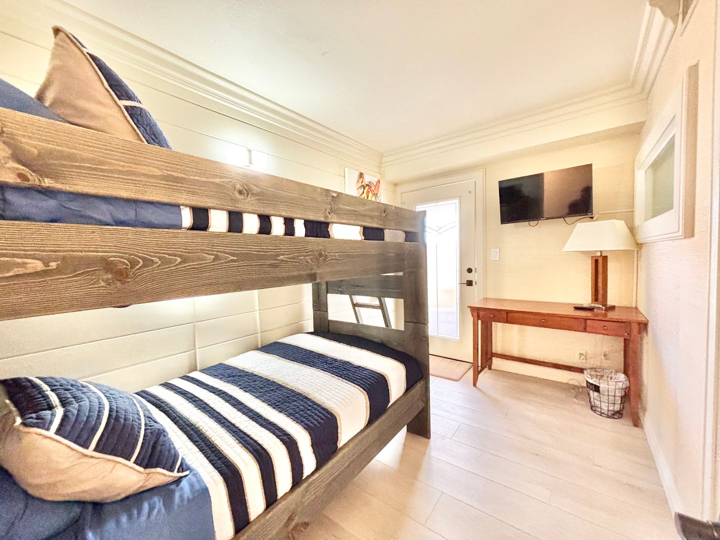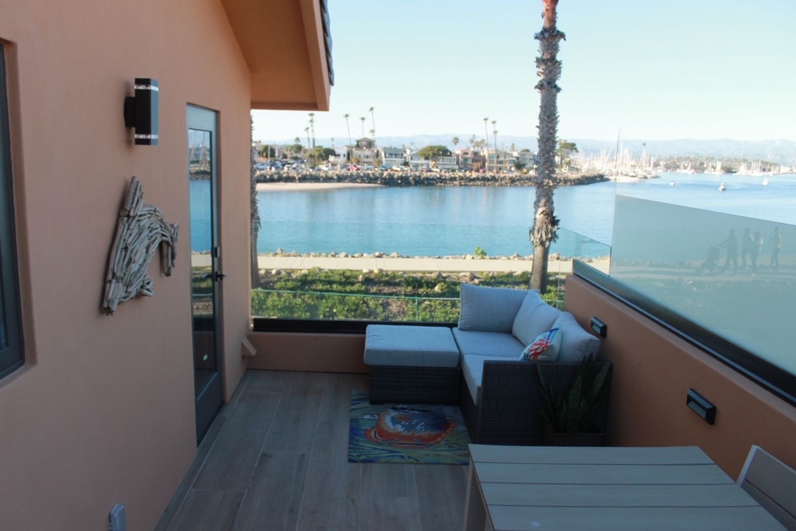 Two bedrooms are located on the first floor along with a luxurious bathroom with a insulated soaking tub and fireplace. One bedroom has a queen size bed and a large window viewing the harbor. The second bedroom has two XL twin bunk beds. The patio has a seating area and a tournament size ping pong table. Don't miss the chance to get to live in this beautiful long term vacation rental!