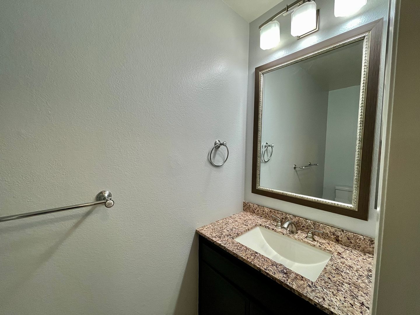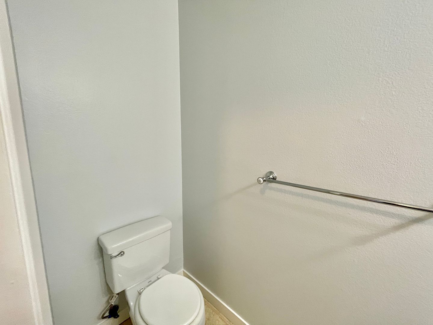 The two level unit is on the second floor, and has no one above you! Enter into the property to be greeted by an entryway that leads into the open concept kitchen and living room. The kitchen has stainless steel stove and microwave, and beautiful teal cabinets. The spacious living room has new wood-like flooring and a large sliding glass door that leads to the private balcony.